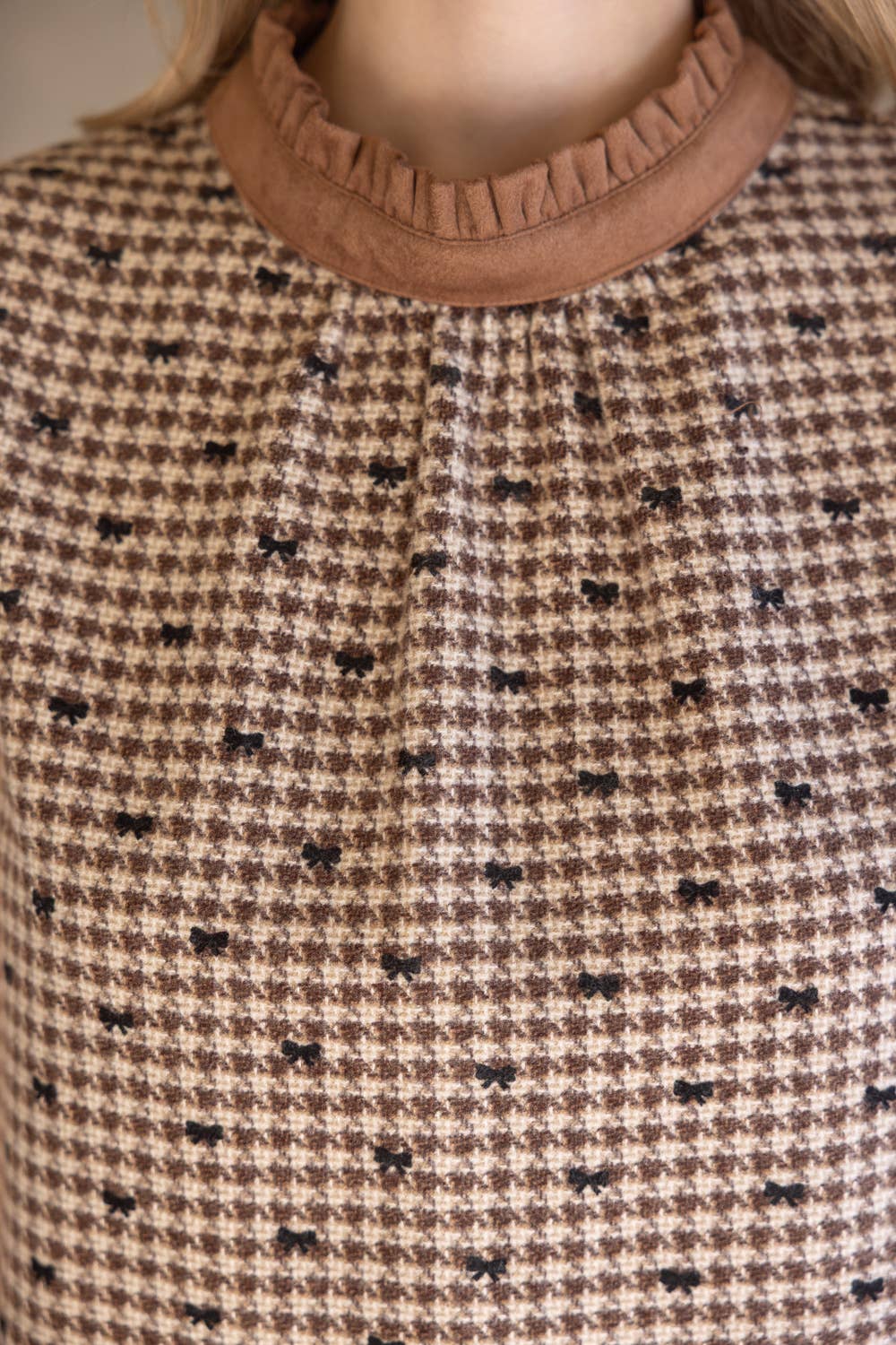 Autumn Bow Flannel Dress | Cozy Shift Dress with Bow Detail