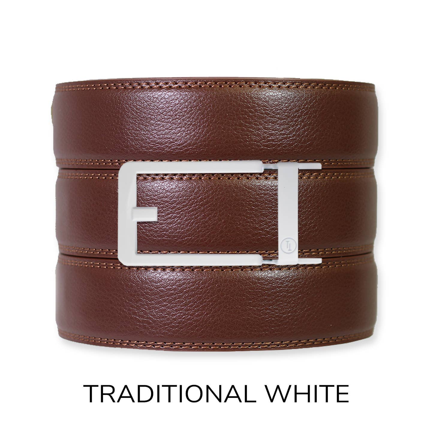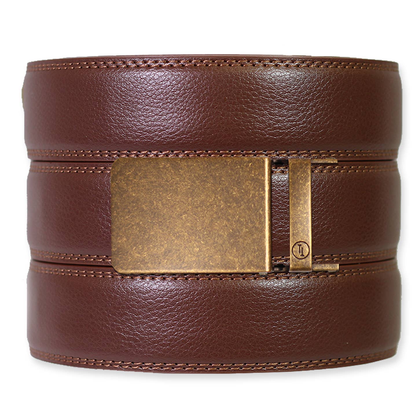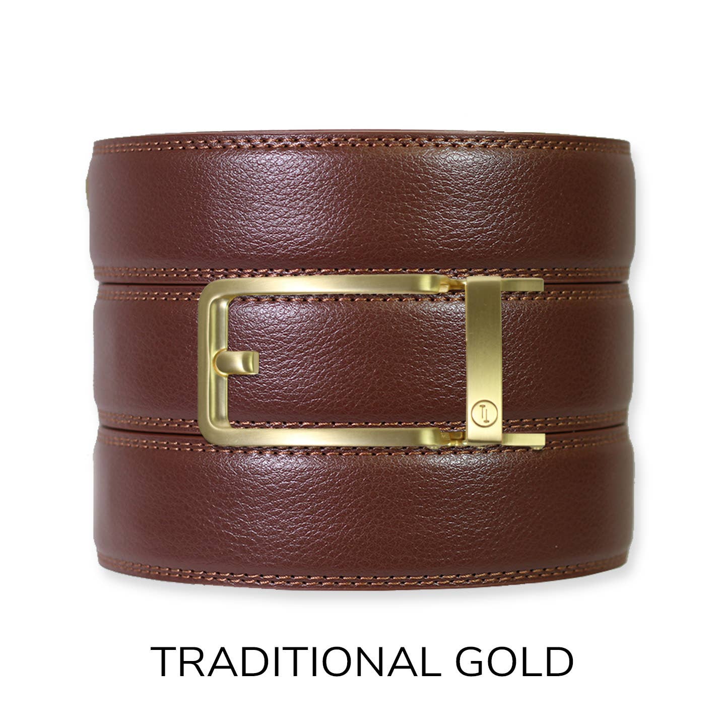 This Chestnut Leather Ratchet Belt & Buckle Set offers a perfect fit every time, adjusting easily to your waist for lasting comfort. Its medium brown shade complements any outfit, making it a versatile and stylish accessory. Designed to adapt as your size changes, this belt ensures a snug, comfortable fit without the hassle of traditional belts. Experience the convenience and timeless look of this durable leather ratchet belt.