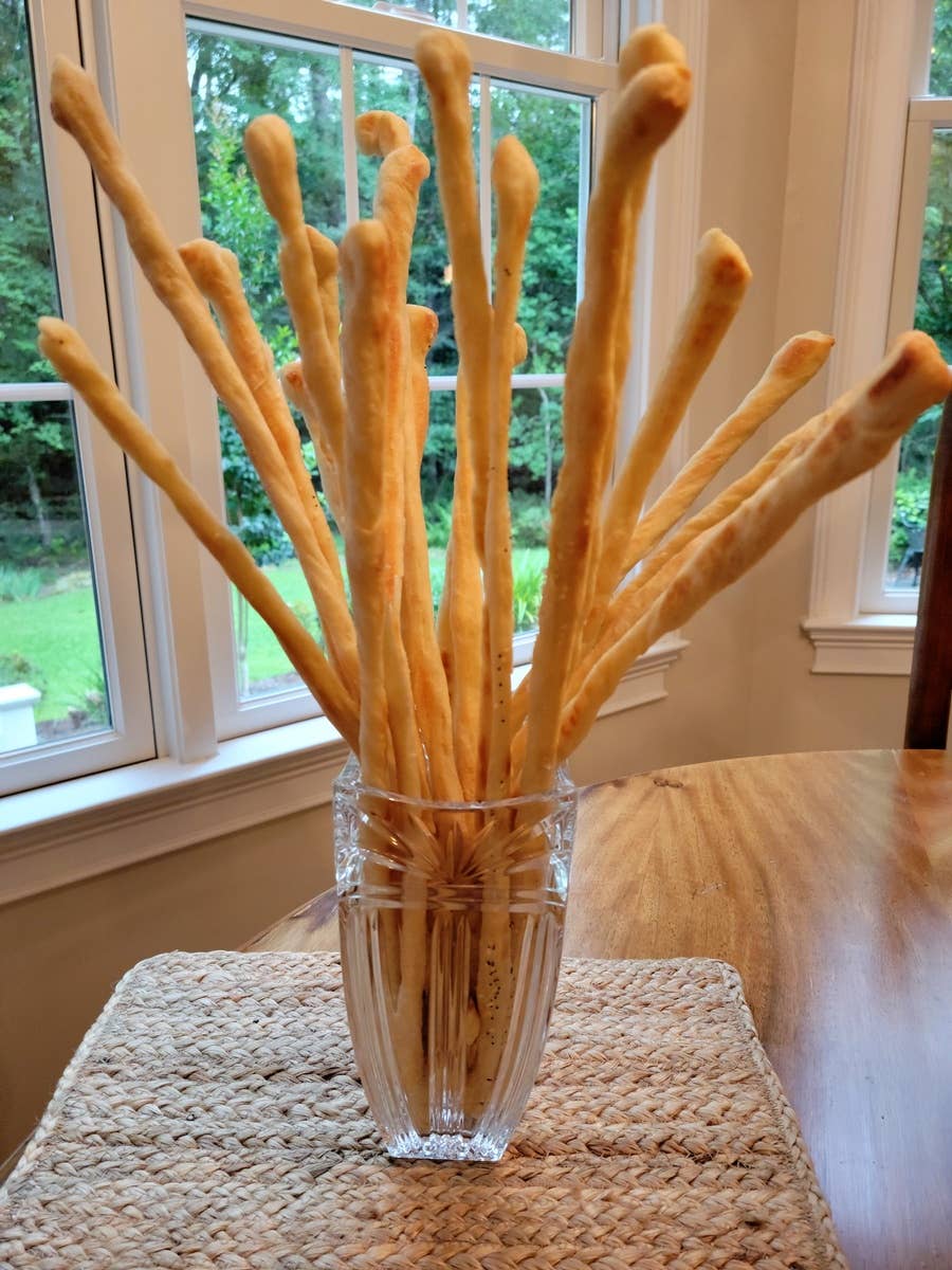 Whether you have visited Italy in the past or have always wanted to go, these traditional Italian bread sticks will transport you there in a flash. Thin, rustic, crisp and irregular pencil shaped bread sticks make the the perfect snack with a glass of wine or use as a dipping stick with your favorite creamy dip. All you need is water, olive oil, 1 hour to rise, cut, stretch and bake. You will not only impress your guests, you will impress yourself! Serve plain or top with salt, cracked pepper, sesame seeds, or herbs for your own take on these delicious grissini bread sticks! Hand crafted in small batches in Ailey, GA. Made to order - 1 year shelf life.