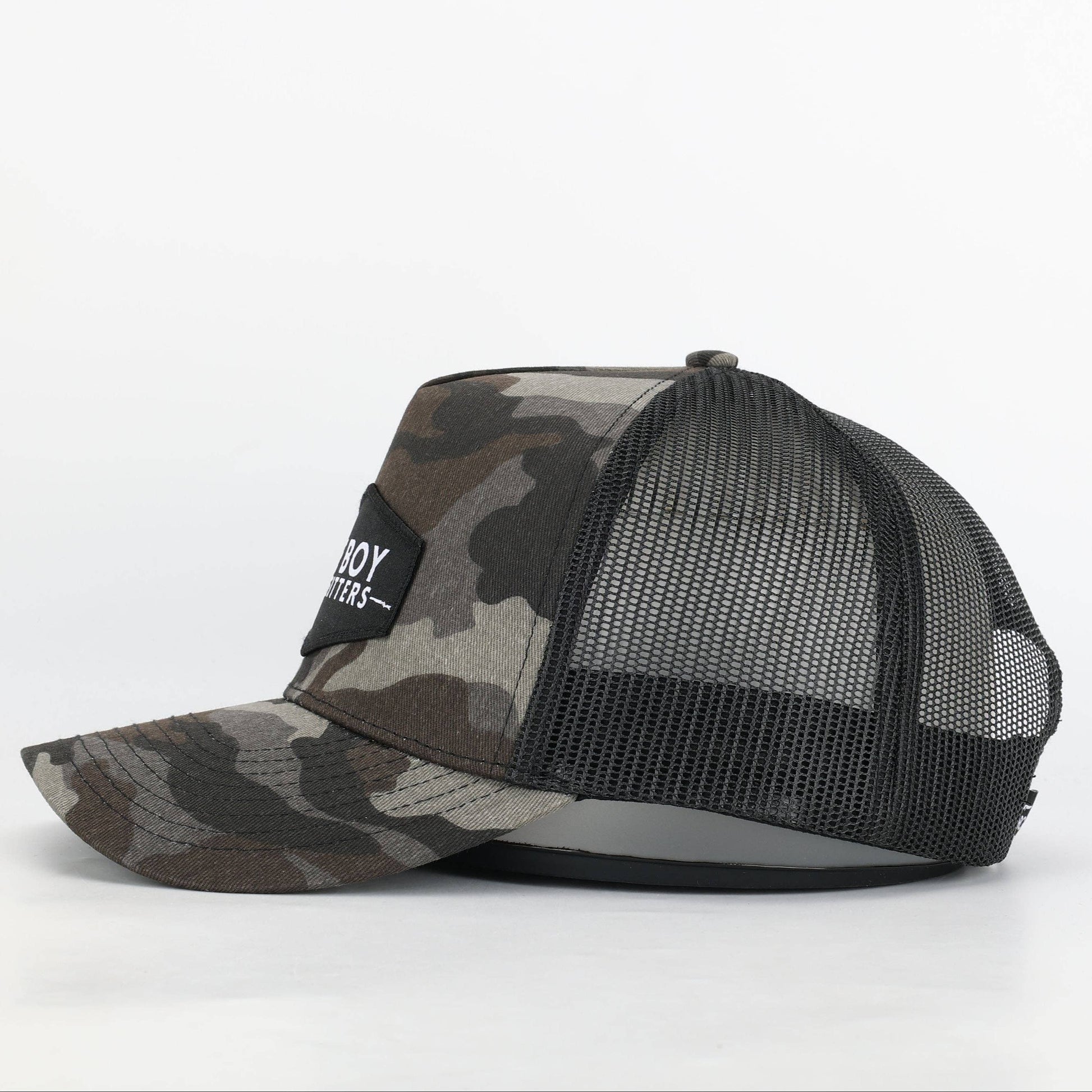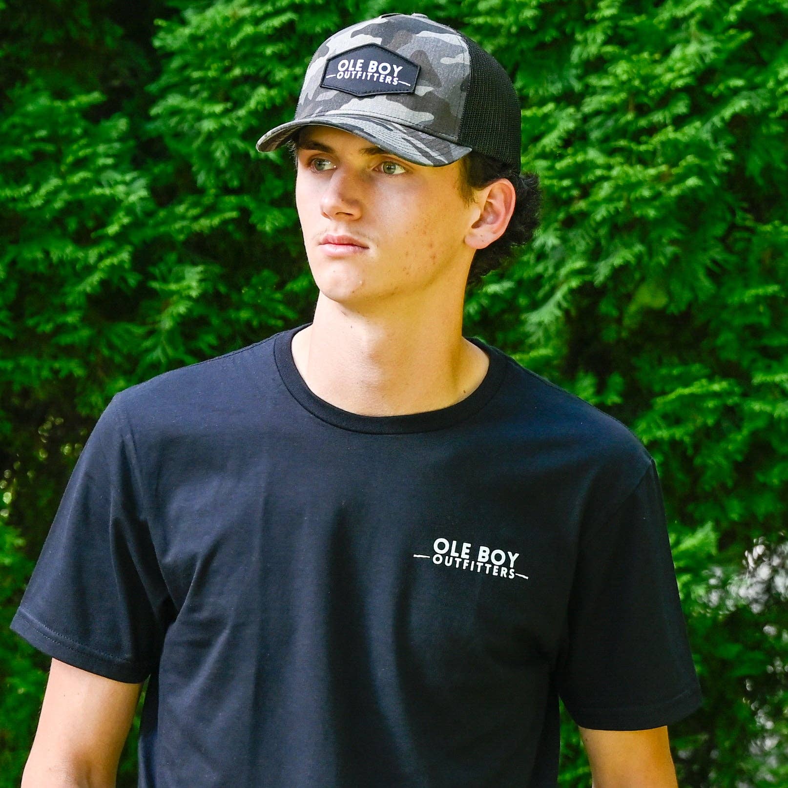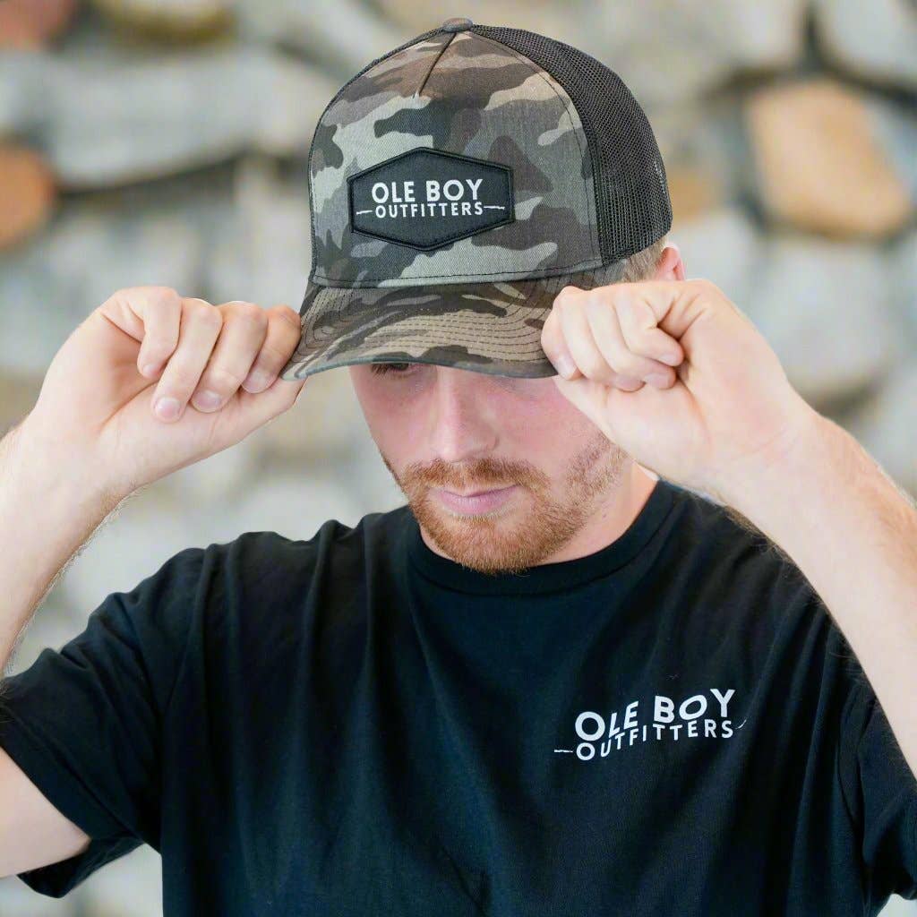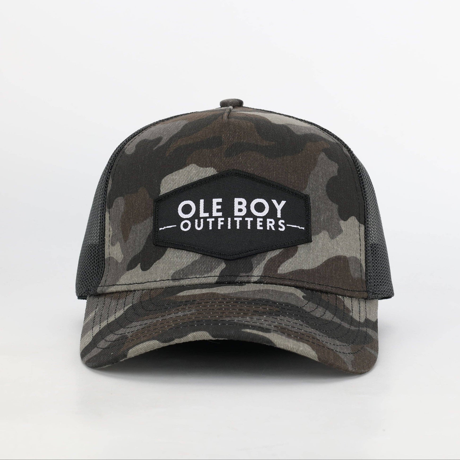 Elevate your style with the OLE BOY Black Camo Classic Logo Patch Hat. Made with 100% cotton, this 5-panel trucker hat features our classic logo embroidered patch.