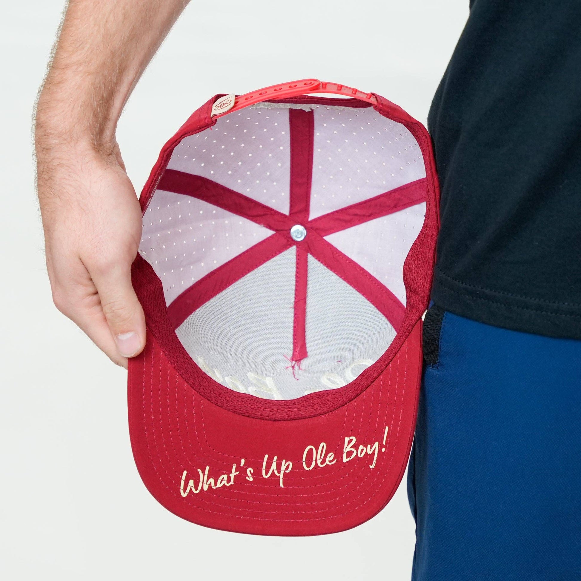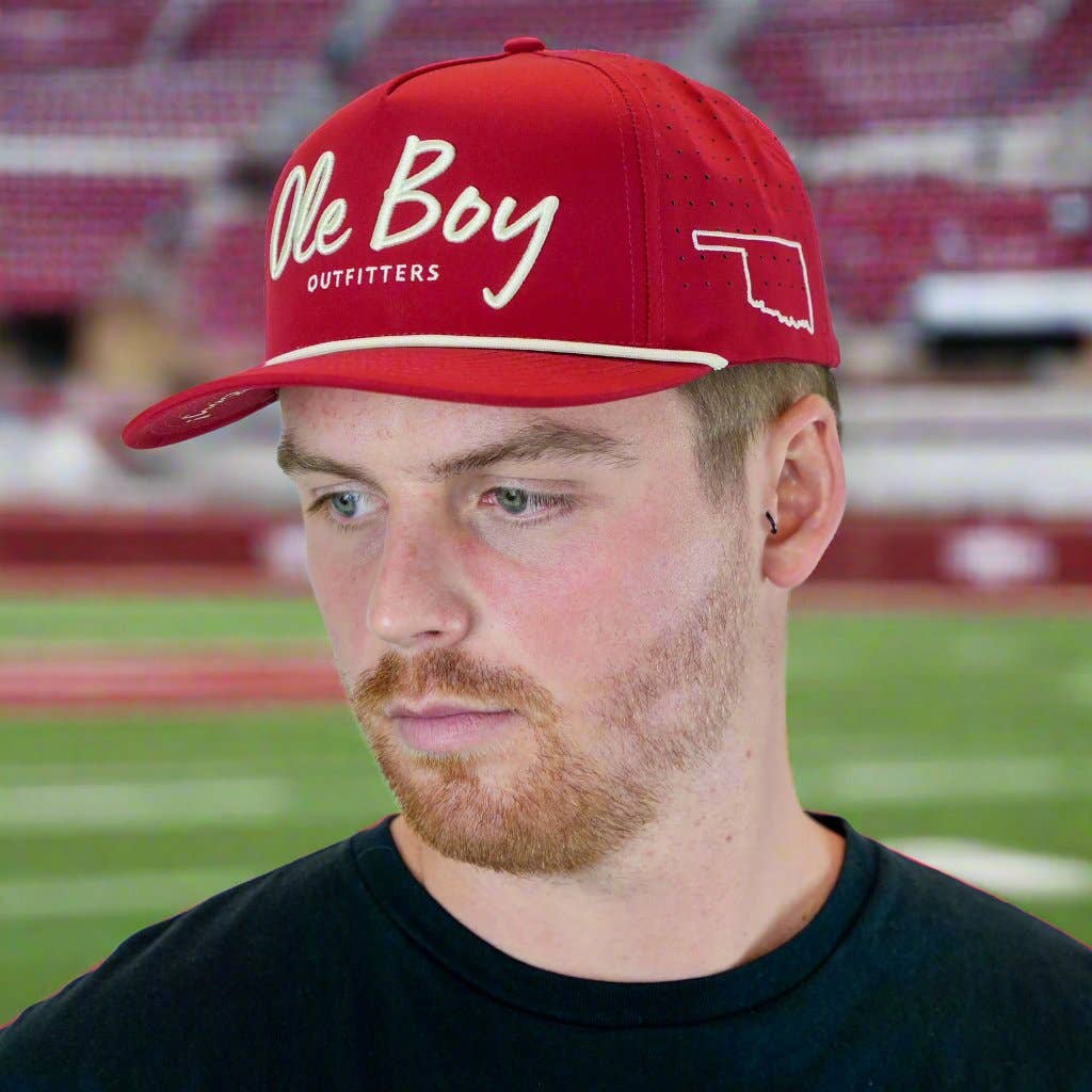 Be game-day ready with the Ole Boy Oklahoma Game Day Performance Golf Hat. Embroidered with "Norman" on the back and the state of Oklahoma on the side, this hat shows your love for the Sooners and your state pride. Featuring our trademarked "What's up Ole Boy!" on the bottom of bill, Its advanced design and lightweight materials ensure ultimate comfort and breathability. Perfect for football games, golf, or casual wear. It's the ultimate accessory for any ole boy.