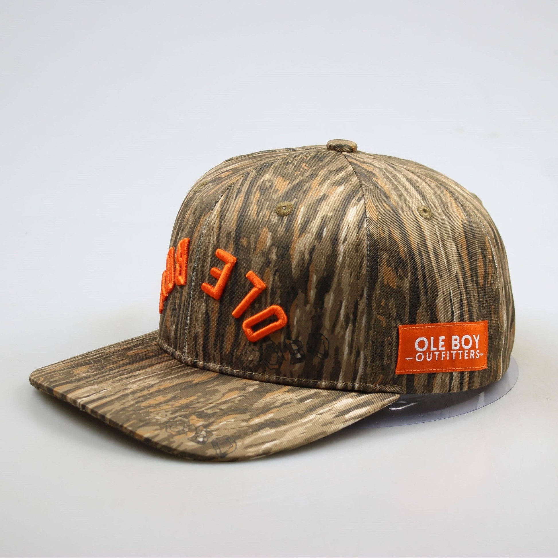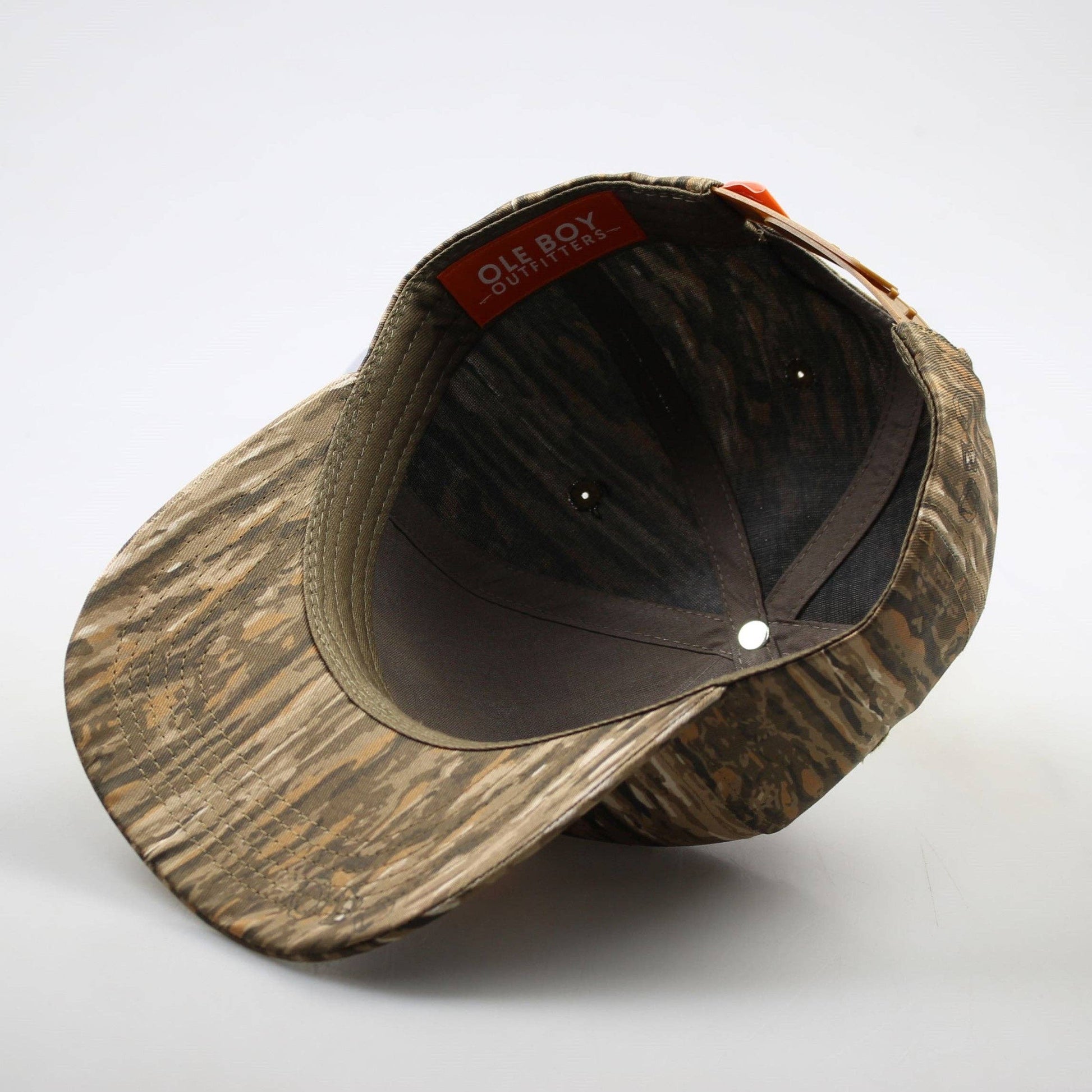 Introducing the OLE BOY Upside Down Deer Antler Camo Hat! Our copyrighted deer antler camo design, paired with our upside down ole boy logo in safety orange, makes for a one-of-a-kind snapback hat. Represent your love for the outdoors with this stylish and unique piece.